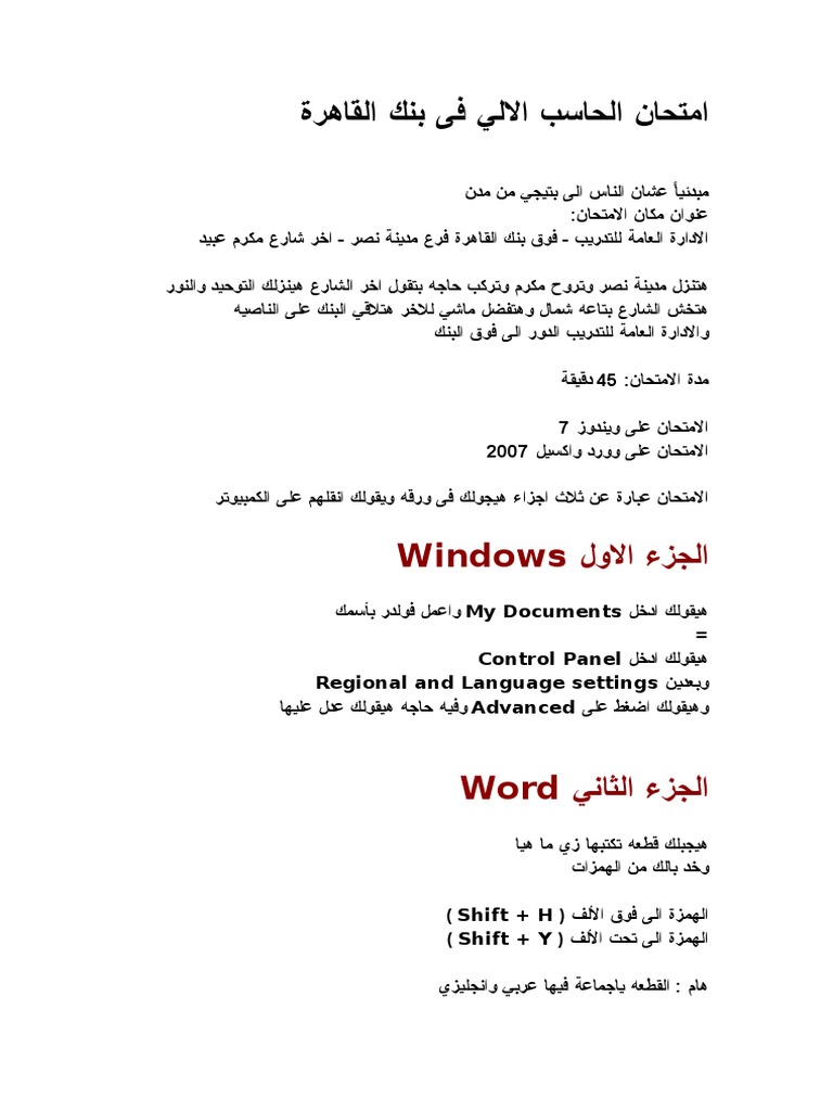 امتحان الحاسب الالي فى بنك القاهرة pdf