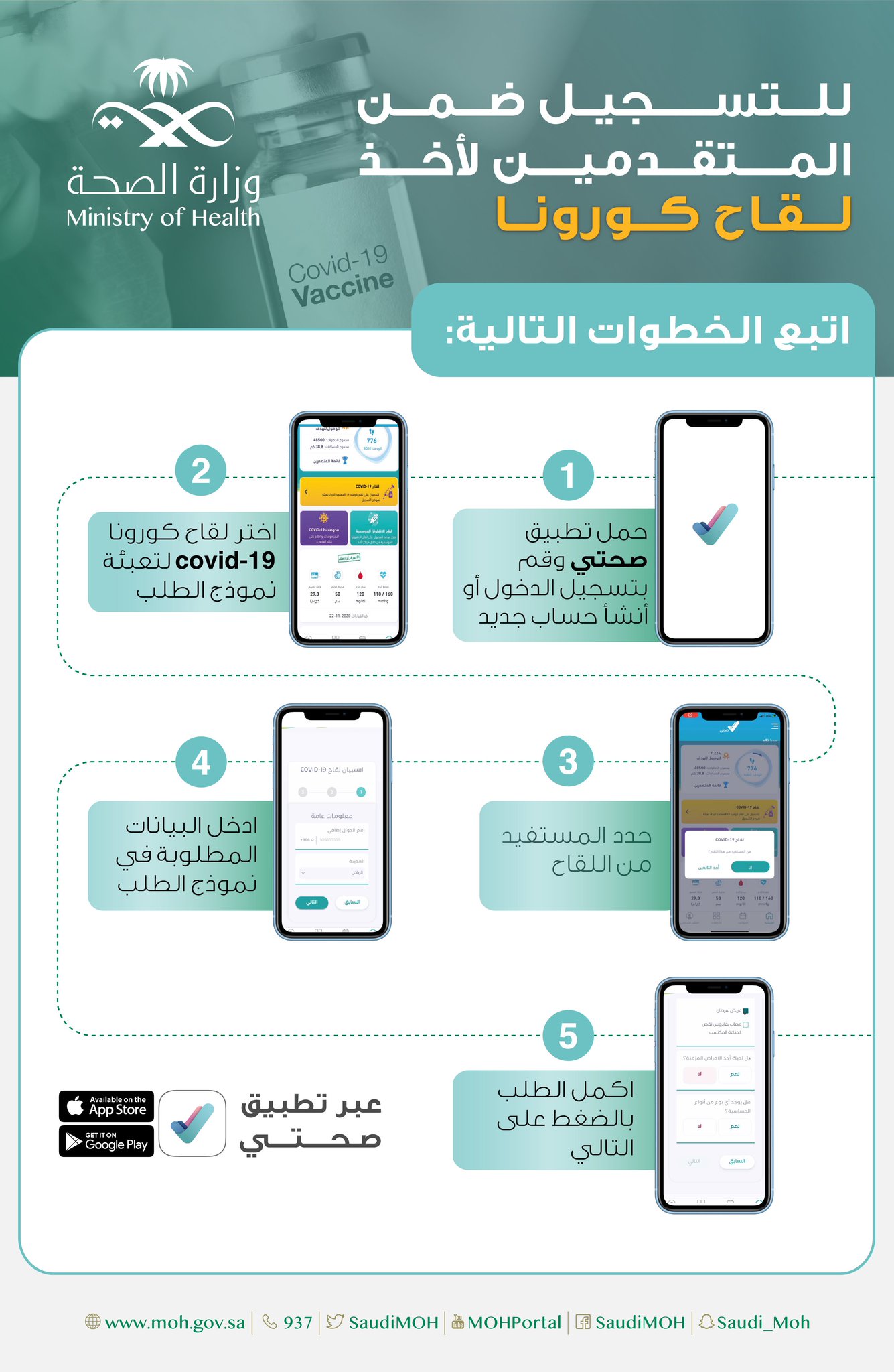 و ز ا ر ة ا لـ صـ حـ ة السعودية no twitter خطوات التسجيل في تطبيق صحتي للحصول على لقاح كورونا كوفيد19 سجل الآن وساهم في حماية نفسك ومجتمعك