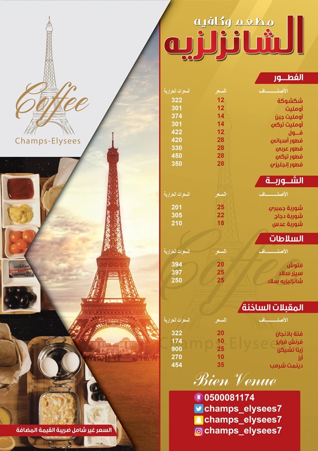 مطعم و كافيه الشانزليزيه الطائف المنيو الجديد ورقم الهاتف