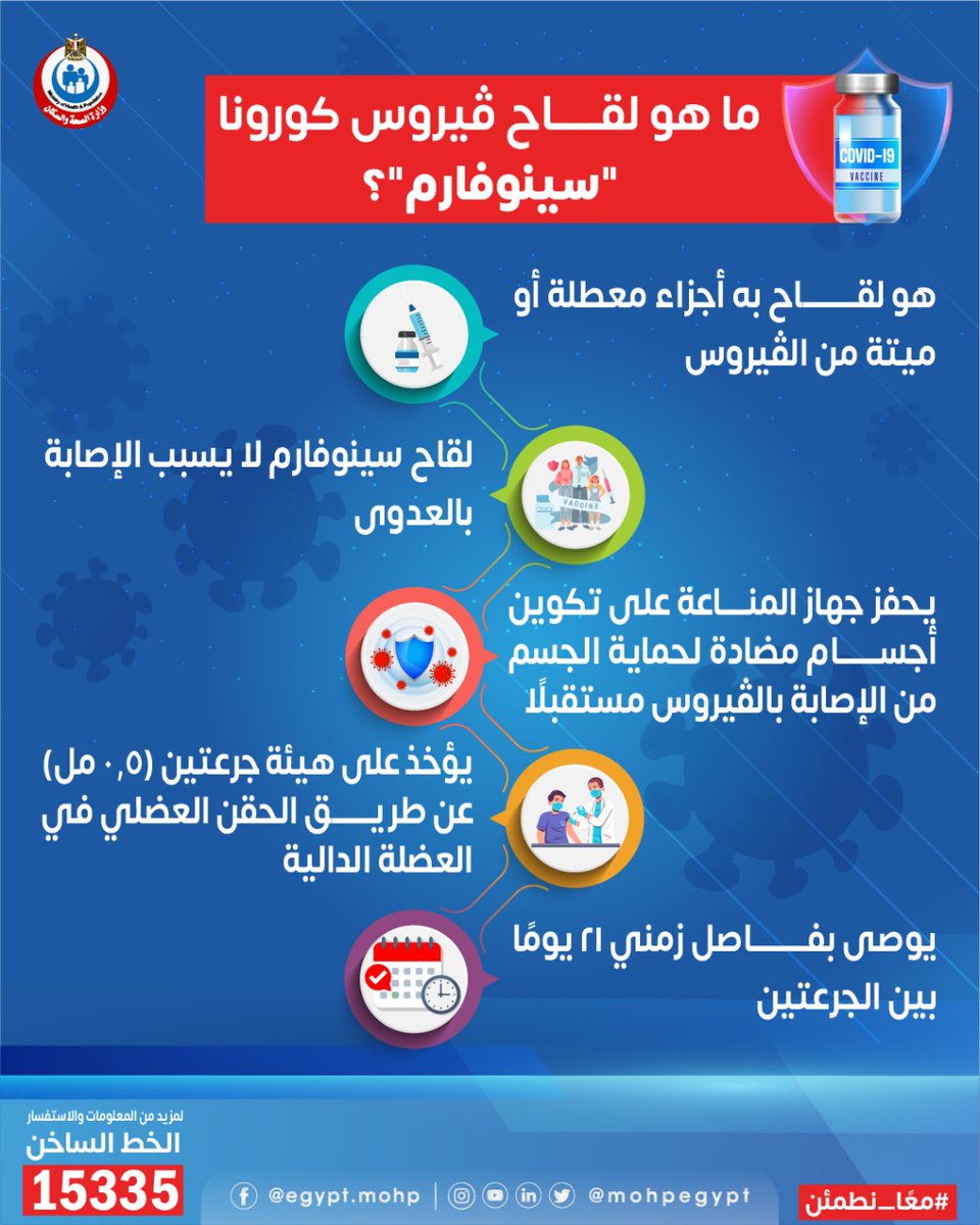 وزارة الصحة والسكان المصرية on twitter ما هو لقاح فيروس كورونا سينوفارم للتسجيل وحجز اللقاح يرجى زيارة الموقع الإلكتروني https t co uhgl2nvhgq ولمزيد من الاستفسار يرجى الاتصال بالخط الساخن ١٥٣٣٥ مع ا نطمئن https t co jvqcbitl4z