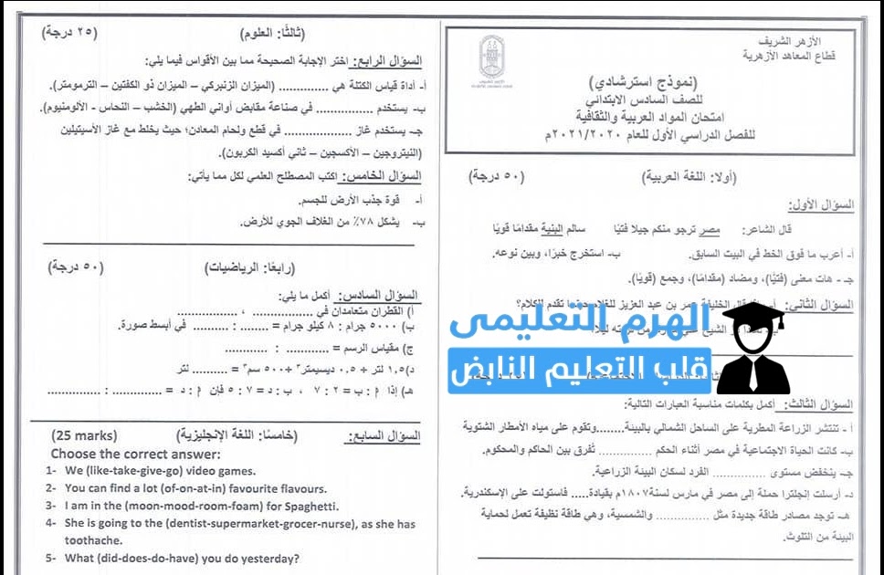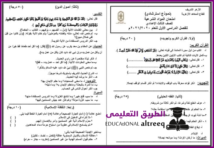مراجعة نماذج امتحانات الثانوية الأزهرية 2020 وإجابتها pdf رابط بوابة الأزهر الأخبار جريدة الطريق