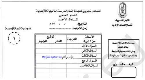 نموذج امتحان الأحياء 2020 لطلاب الثانوية الأزهرية شبابيك
